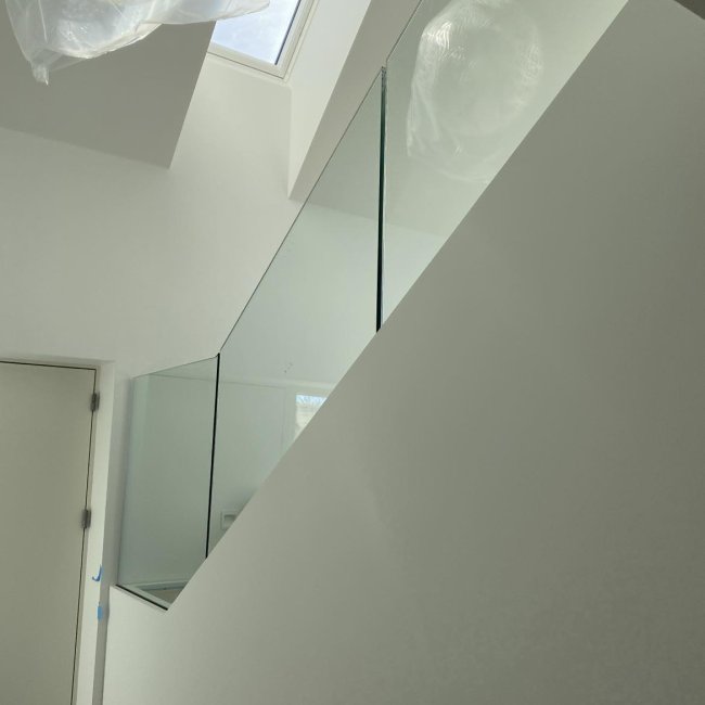 Inspiration til glasværn Billeder Glasværn til trappe med messing stolper. Glasværn indendørs. Glasværn til trappe. Glasværn udendørs. Indendørs glasværn. Trappe glasværn. Glasværn til terrasse i hvid. Glasværns afskærmning til altan.